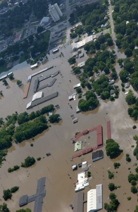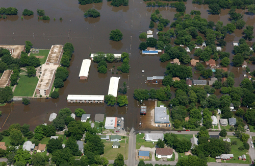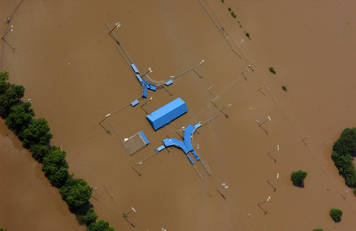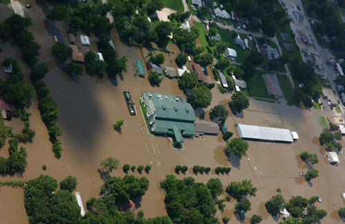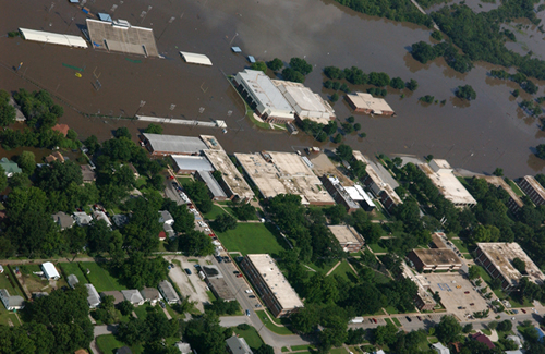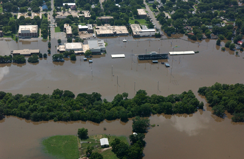 NEO College. Flooded the football field, gym, Nursing building, student union