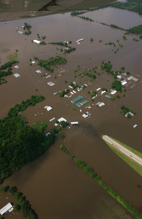Looking west on Hwy 69. There are actually two crazy kids climbing up to the roof of their house to get something out of the attic. Anyone who got in the water was supposed to get a tetanus shot!