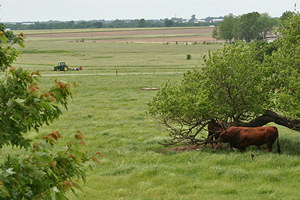 We haven't calved a group of 60 heifers in a long time. Wish us luck. This is one of the bred heifers enjoying a summer evening. |