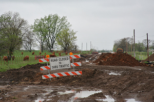 Three miles and a bridge over the Interstate are under construction directly in front of the ranch entrance. Yes, it will be nice when it's completed but we're tired of going around the mile section and changing flat tires!